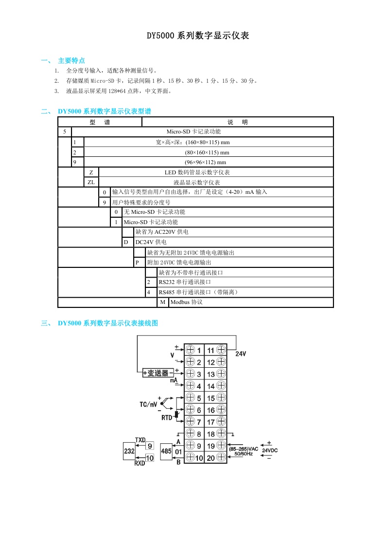 DY5000(Z)系列數(shù)字顯示儀表