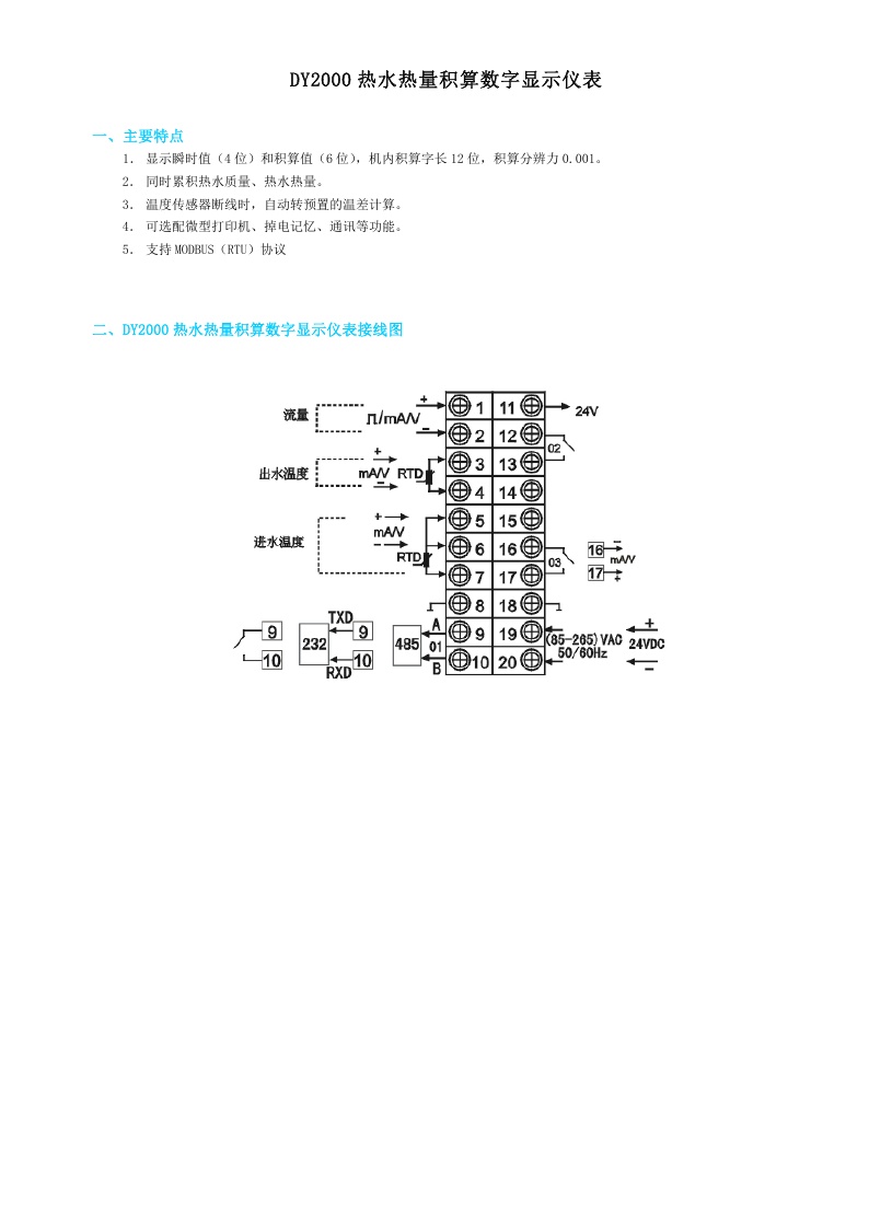 DY2000(W)熱水熱量積算數(shù)字顯示儀表
