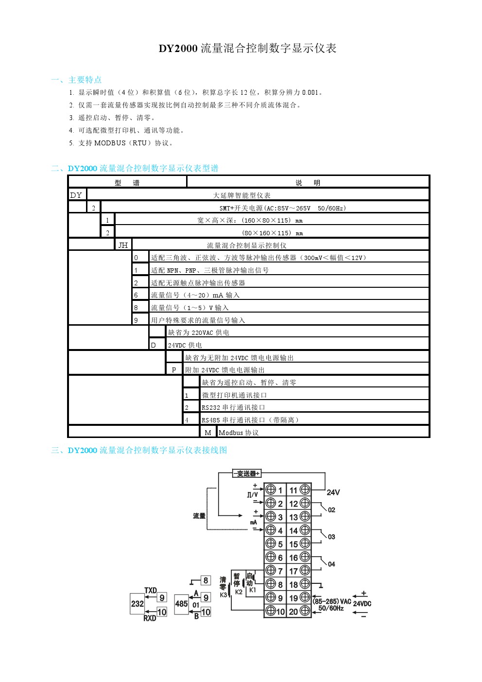 DY2000(JH)流量混合控制數(shù)字顯示儀表