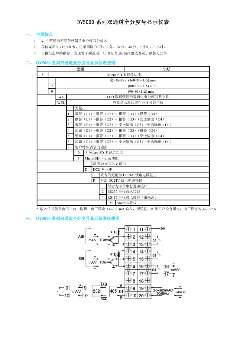 DY5000(WE)系列雙通道全分度號顯示儀表