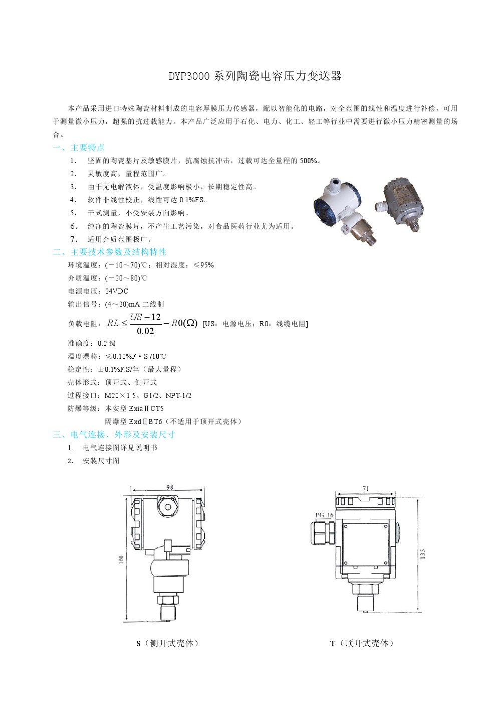 DYP3000系列陶瓷電容壓力變送器